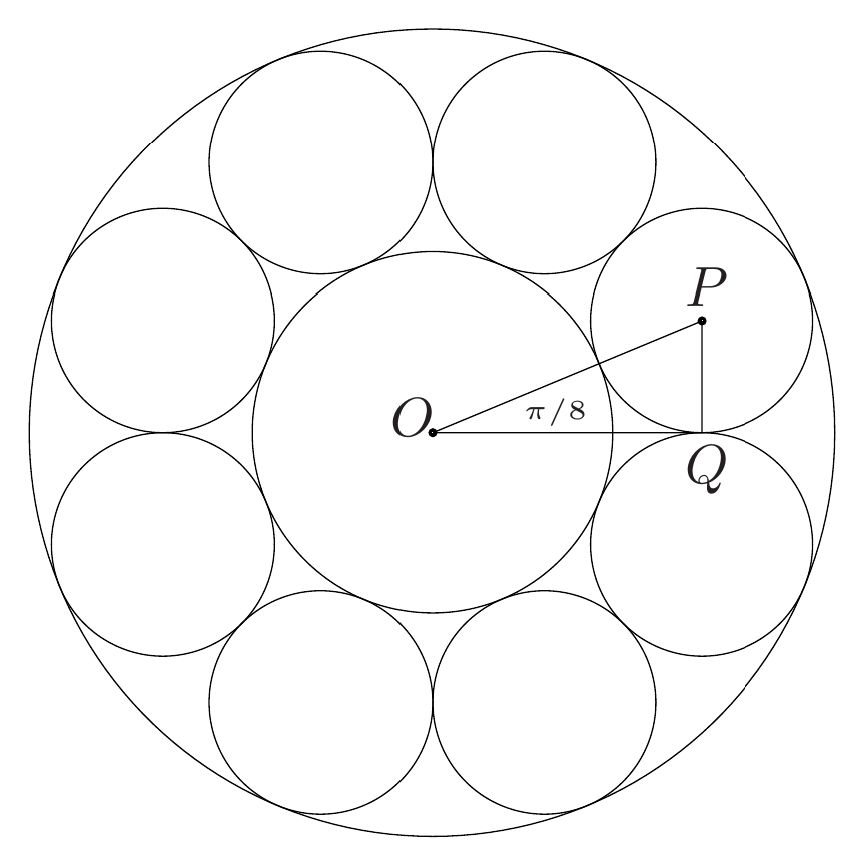 Ademais, dada a configuración das oito circunferencias pequenas, sabemos que