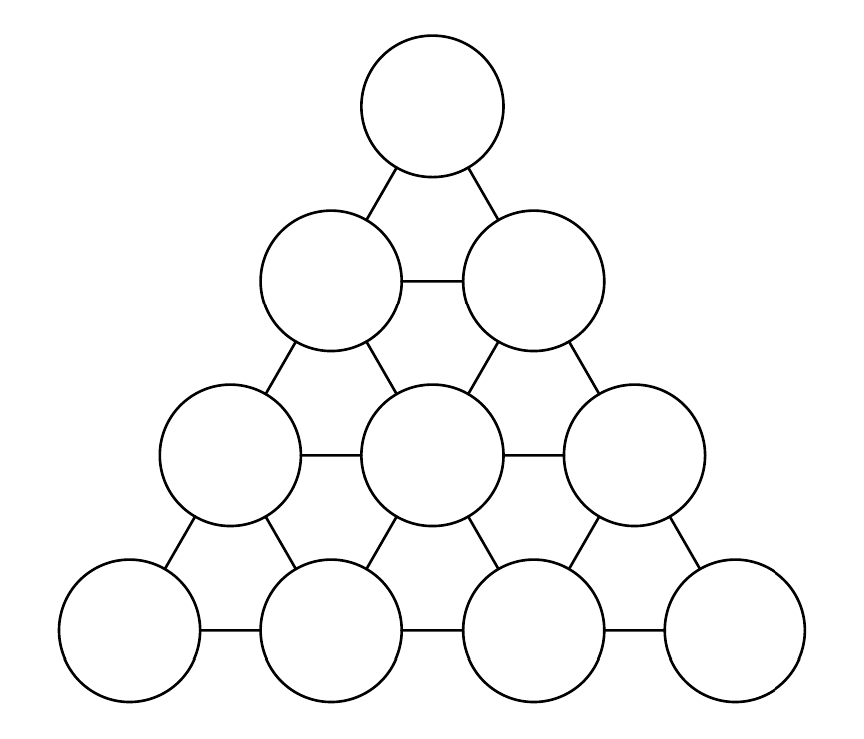 Sobre un taboleiro con forma de triángulo equilátero de filas (a figura sería ) xógase un solitario. Sobre cada casilla colócase unha ficha branca por un lado e negra polo outro. Inicialmente só unha ficha situada nun dos vértices ten o lado negro cara arriba, as demais teñen o lado branco cara arriba. En cada movemento do xogo se retira soamente unha ficha negra do taboleiro e se lle dá a volta a cada unha das fichas que ocupa unha casilla veciña (é dicir, ás que están unidas por un segmento). Despois de varios movementos, é posible quitar tódalas fichas do taboleiro?